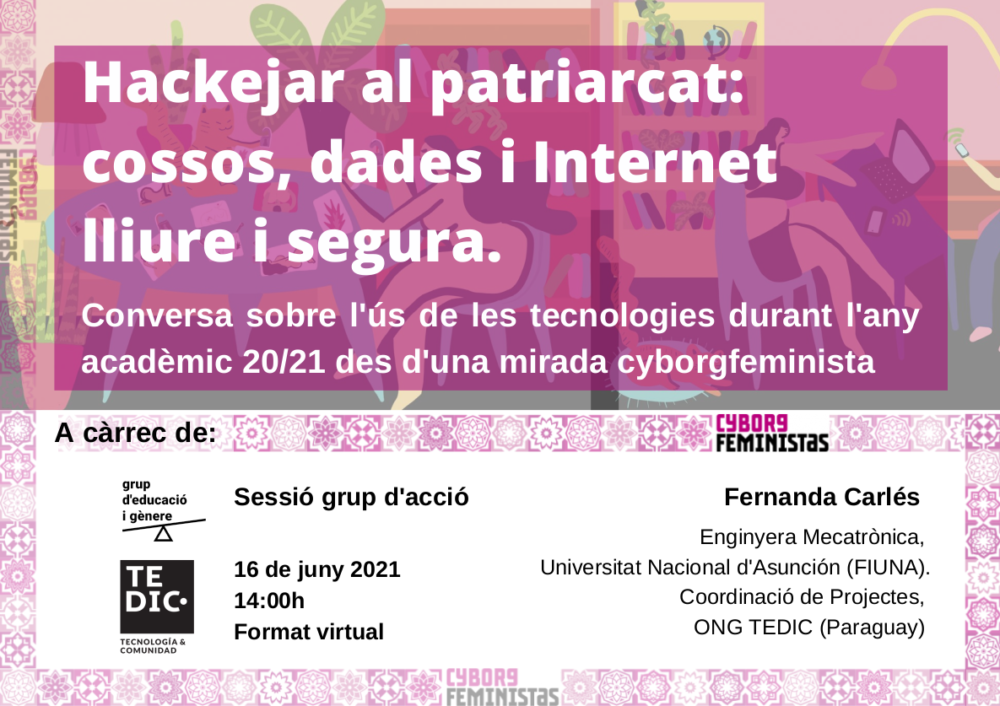 El miércoles 16 de junio a las 8:00h Asunción (14:00 Barcelona), nuestra coordinadora de proyectos Fernanda Carlés estará dando una presentación sobre el rol del género en la construcción de Internet y cómo reconocer patrones de violencia de género en línea. Esta charla está orientada a un grupo de estudiantes de Doctorado en Educación de la Universidad Autónoma de Barcelona