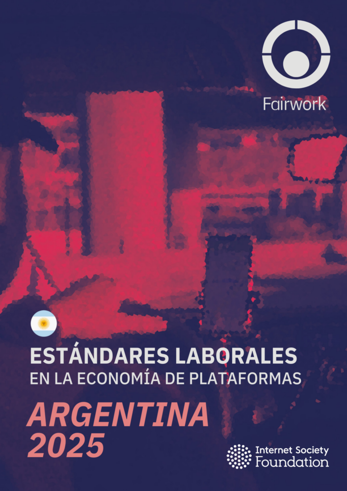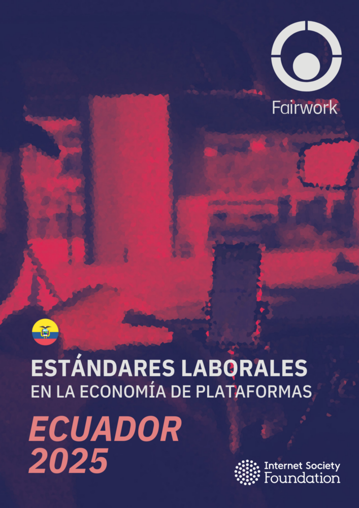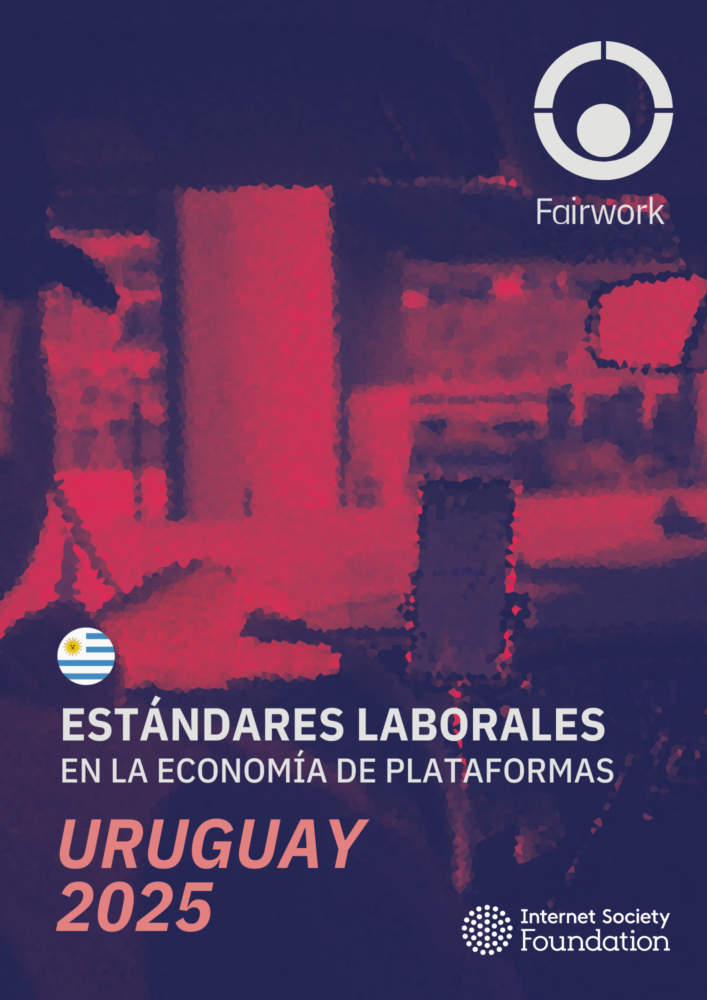 Fairwork evalúa las condiciones de trabajo en plataformas laborales digitales como Uber, Bolt, Cabify, PedidosYa, entre muchas otras. Es un proyecto de investigación-acción que pretende generar información sobre cómo los cambios tecnológicos afectan a las condiciones laborales en todo el mundo, a través de la medición de los principios de pago, condiciones, contratos, gestión y representación justa.