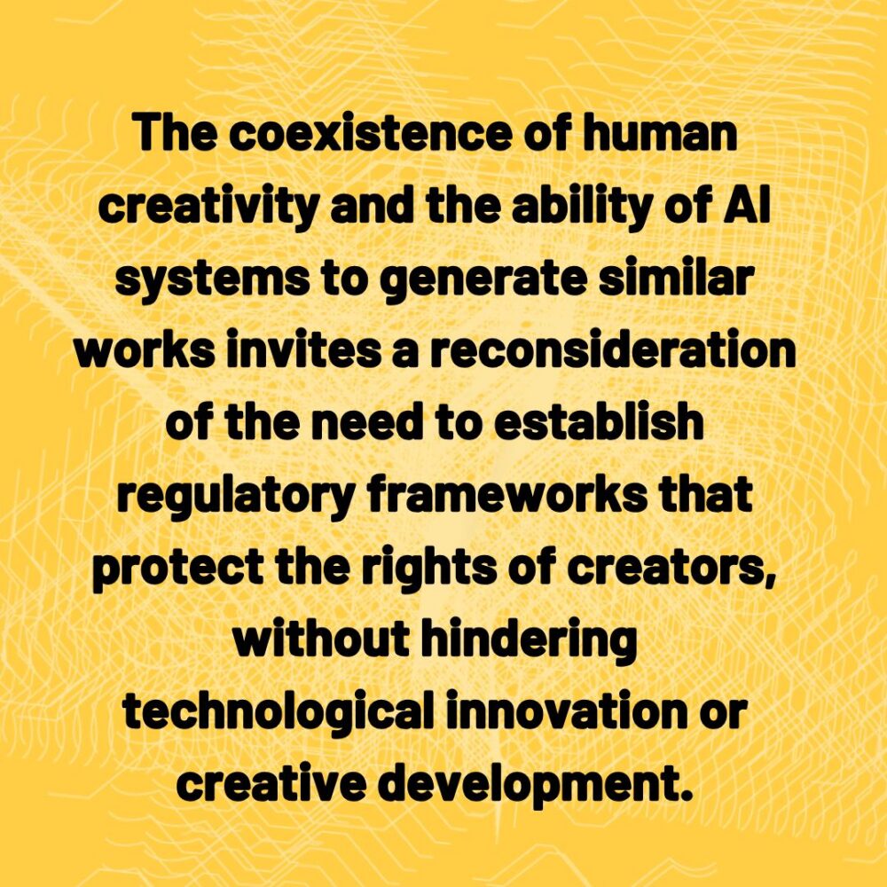 The dialogue surrounding copyright and artificial intelligence raises complex questions that challenge not only the legal sphere but also the ethical. The appearance of increasingly sophisticated works using these technologies demands a review of current paradigms in intellectual property. The coexistence between human creativity and the ability of AIs to generate similar works invites reconsideration of the need to establish regulatory frameworks that protect the rights of creators without hindering technological innovation or creative development. Despite significant advances in AI, there are limitations that must be addressed with caution. One key limitation is the lack of deep and contextual understanding by language models like the one used by ChatGPT. Although these models can generate text coherently, they do not possess underlying knowledge or true understanding of content. This can lead to the production of incorrect or biased information: even AI tools aimed at detecting possible plagiarism can yield false positives.