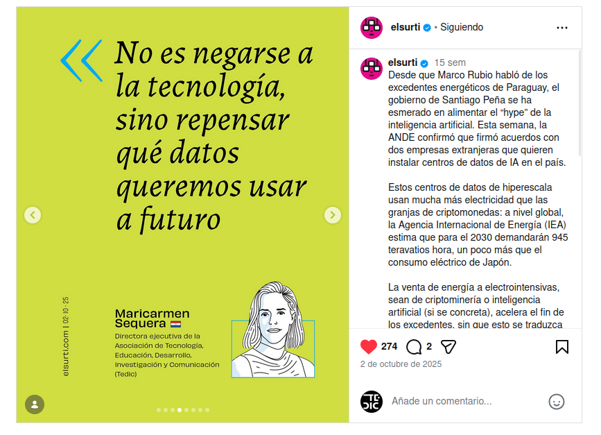 Artificial intelligence appeared linked to debates on automation, algorithms, bias, the use of chatbots, and automated decision-making. In this coverage, TEDIC contributed a critical perspective on the false neutrality of AI and the urgency of addressing it from a human rights approach, seeking ethical and transparent implementation in public policies and services.