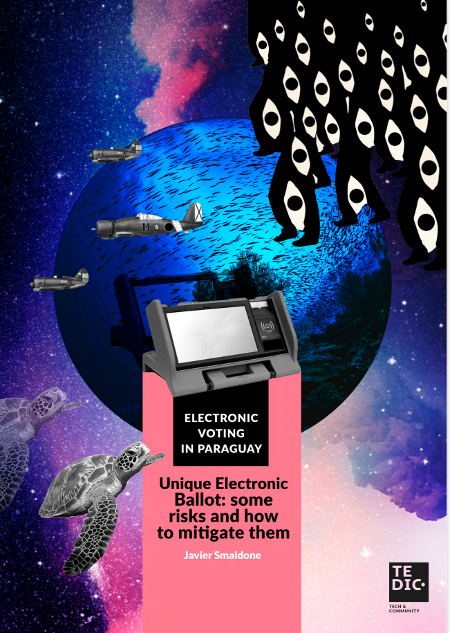 In recent years TEDIC has carried out several actions on the implementation of electronic voting in Paraguay, with special focus on the concerns about the implications of the implementation of this technology in voting in the electoral system and its impact on the democratic system. Following this framework of actions, this year TEDIC invited three experts to deepen this topic in extensive and complex through 3 publications called white papers.
