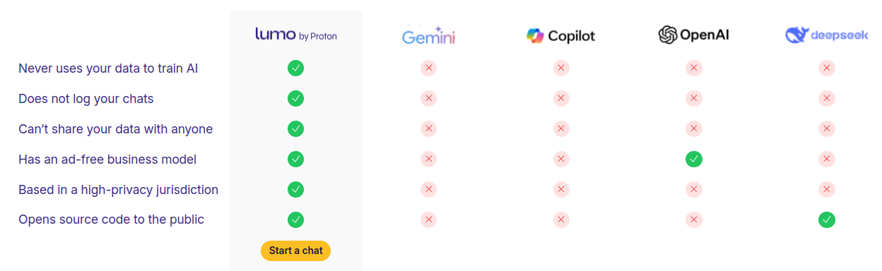 Y aquí reproducimos una comparativa proveída justamente por la Proton Foundation: